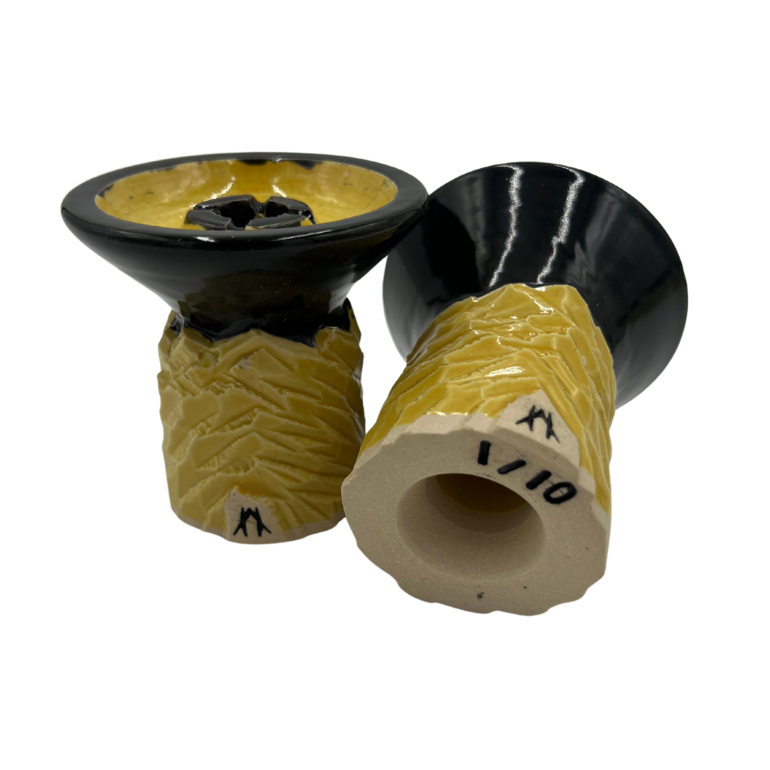 These hand made Ascent Hookah Bowls are inspired by Tangiers Tobacco Noir Line. This limited run has 10 bowls, each with their own serial number 1/10 through 10/10. Each bowl is hand thrown, so they will vary slightly from bowl to bowl.
