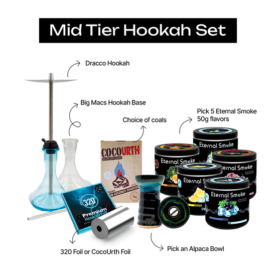 Explore the world of hookah with assurance and panache. Get your Mid Tier Hookah Set today and enjoy a one-of-a-kind session!