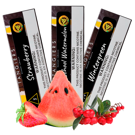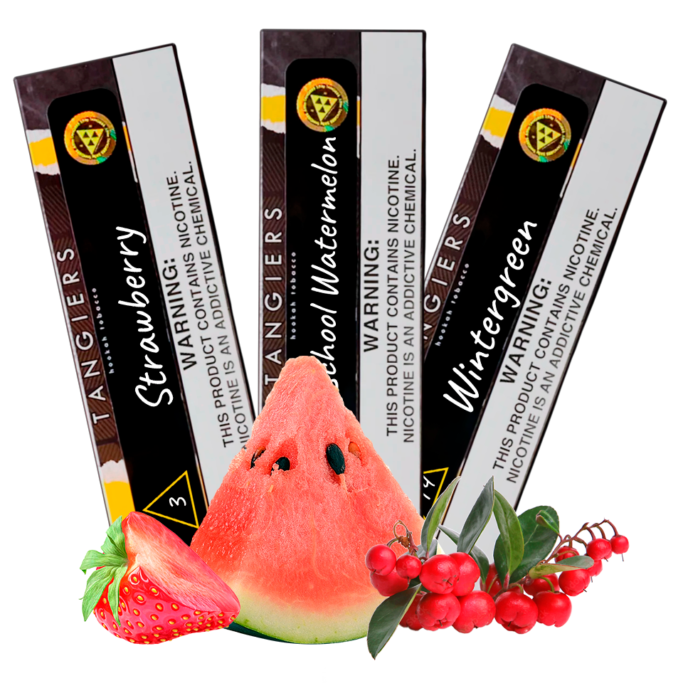 The mix of Tangiers Old School Watermelon, Wintergreen, and Strawberry offers a refreshing and nostalgic flavor combination. The juicy, classic taste of watermelon is brightened by sweet, ripe strawberries, while the cool, minty notes of wintergreen add a crisp, invigorating finish, creating a balanced and lively blend that's both fruity and cool.